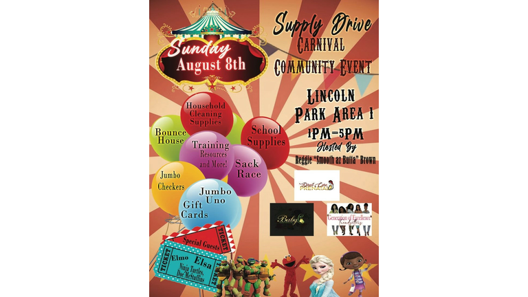 Supply Drive Carnival Community Event LIncoln Park Area 1 Hosted by Reggie Brown - Household Cleaning Supplies - School Supplies - Bounce House - Jumbo Uno & Much more!